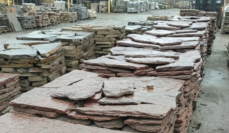 Плитняк песчаник дракон красный галтованный для облицовки цоколя, отмостки 20-35 мм